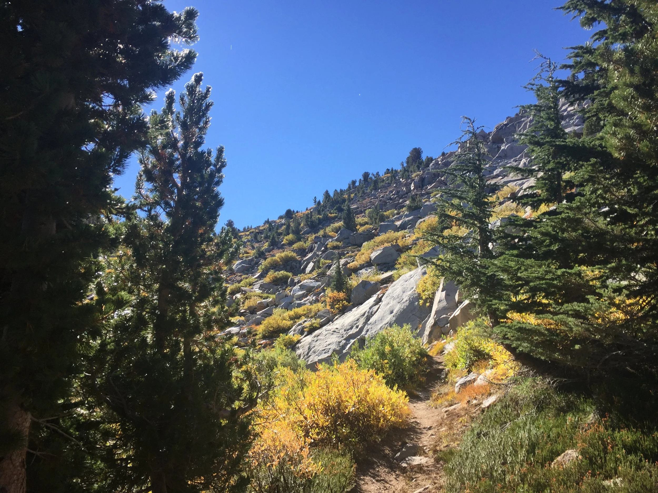 The last 3 miles were downhill but still rocky. I took my eye off the trail for just a second to check where the path was going up ahead and bam. My feet slid from under me and I was on my backside. With my heavy pack it was a struggle to get up and I felt like I had to use every muscle in my body to get upright again.